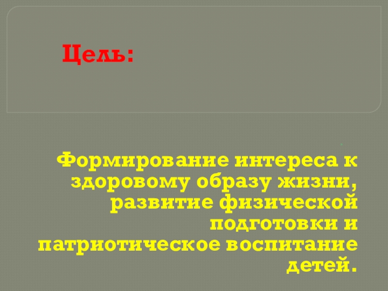 Цель: Формирование интереса к здоровому образу жизни, развитие физической подготовки и патриотическое воспитание детей.