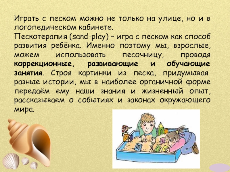 Играть с песком можно не только на улице, но и в логопедическом кабинете.Пескотерапия (sand-play) – игра с