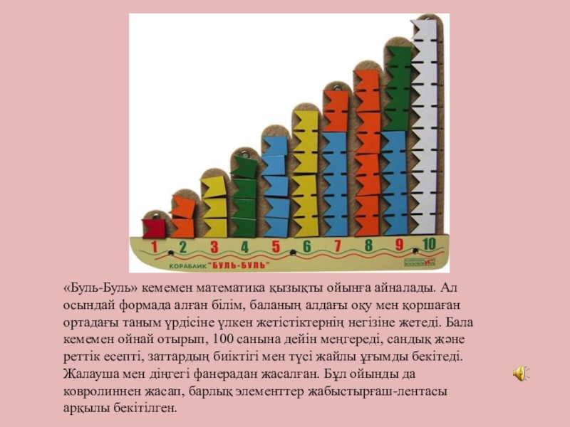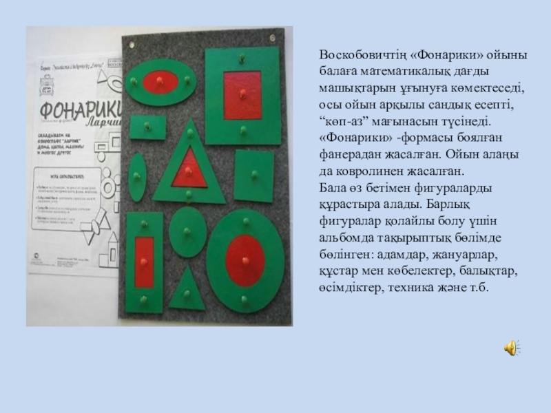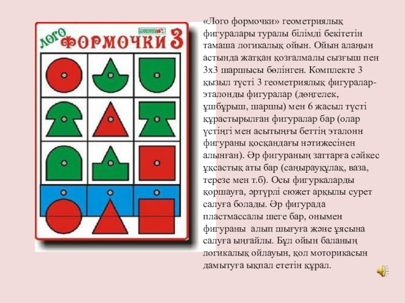 шеше алады, алғашқы сөздерді буынға бөледі және әліппе мен сандарды, түстерді, формаларды жаттап алады. Бұның бәрі ойын түрінде өтеді.