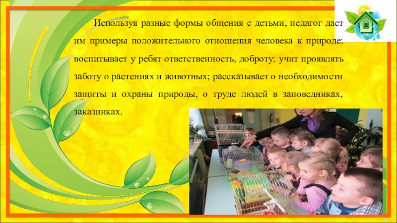 Слайд 11Используя разные формы общения с детьми, педагог дает им примеры положительного