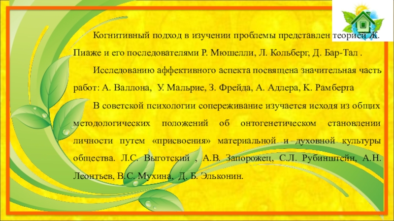Слайд 6Когнитивный подход в изучении проблемы представлен теорией Ж. Пиаже и его