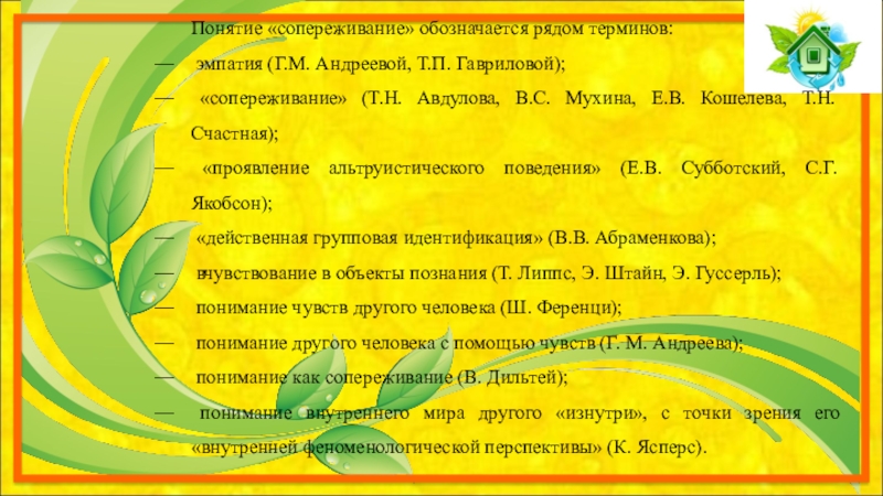 «сопереживание» (Т.Н. Авдулова, В.С. Мухина, Е.В. Кошелева, Т.Н. Счастная);