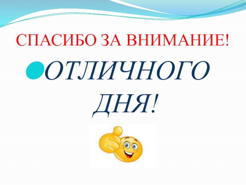 СПАСИБО ЗА ВНИМАНИЕ!ОТЛИЧНОГО ДНЯ!