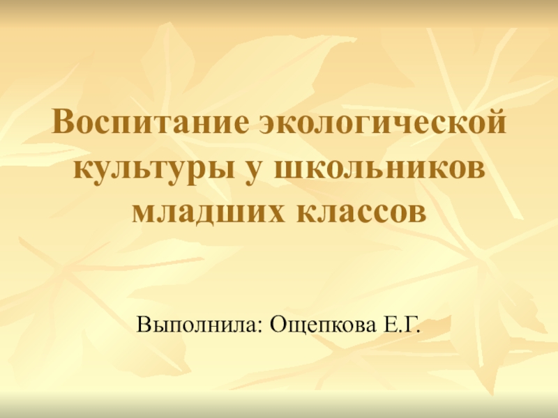 Слайд 1Воспитание экологической культуры у школьников младших классов