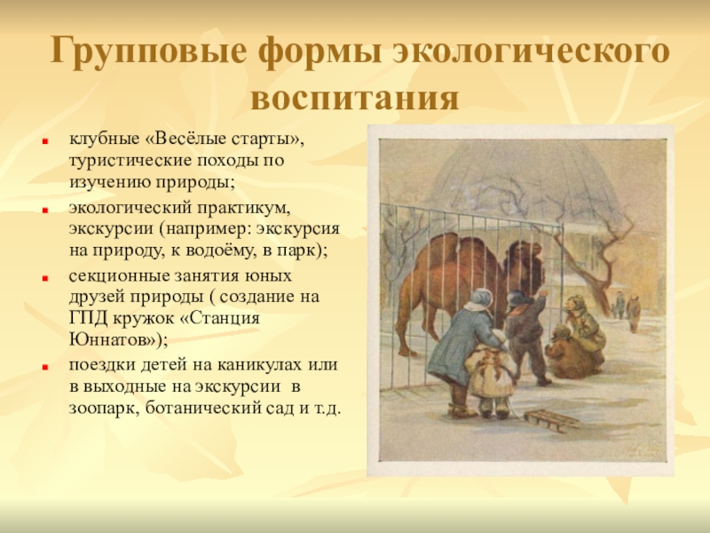 поездки детей на каникулах или в выходные на экскурсии в зоопарк, ботанический сад и т.д.