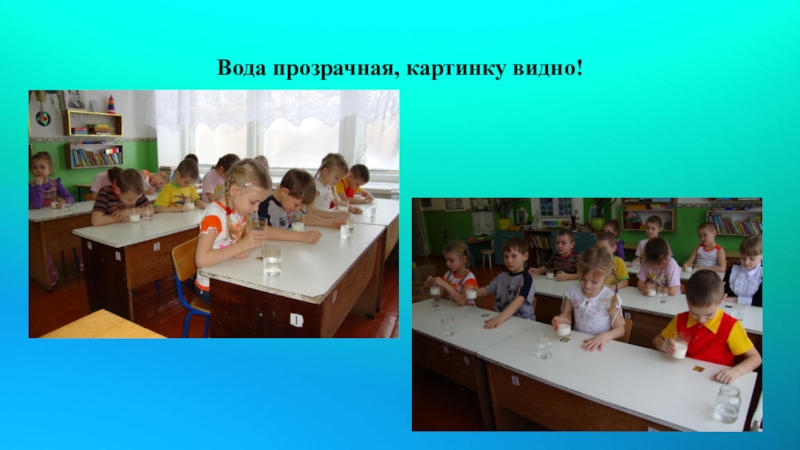 Слайд 4Вода прозрачная, картинку видно!