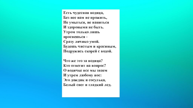 Слайд 2Что такое вода? Это струйка из крана, Это волны и шторм на