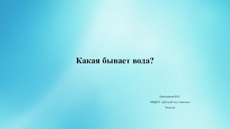 Какая бывает вода?Емельянова В.И. МБДОУ «Детский сад «Аленка»Тюльган