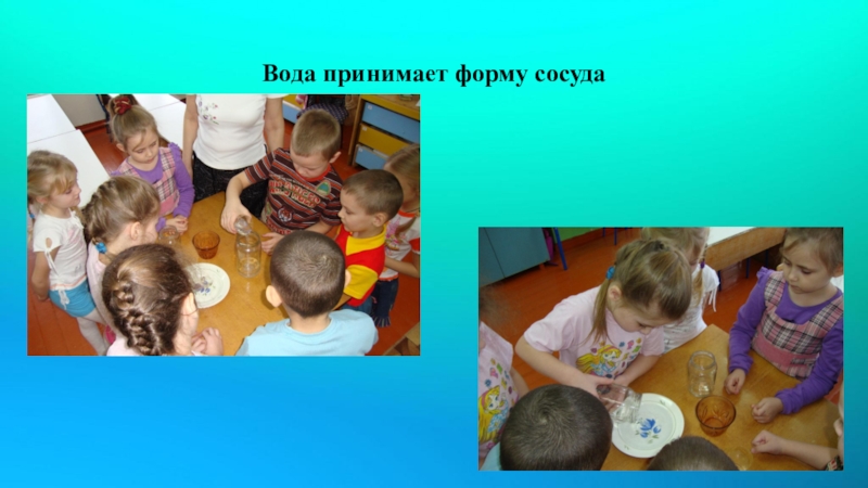 Слайд 11Вода принимает форму сосуда
