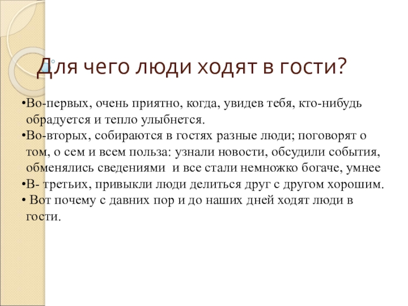 Вот почему с давних пор и до наших дней ходят люди в гости.