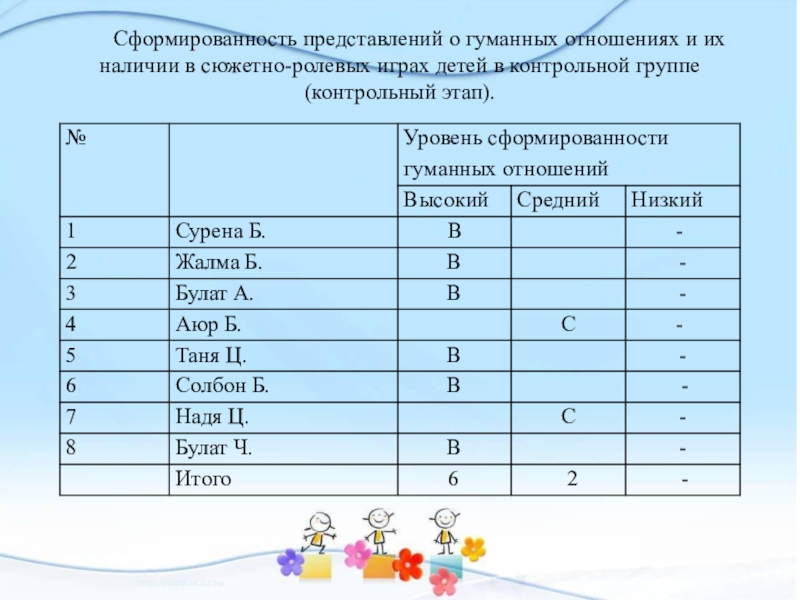 Слайд 19Сформированность представлений о гуманных отношениях и их