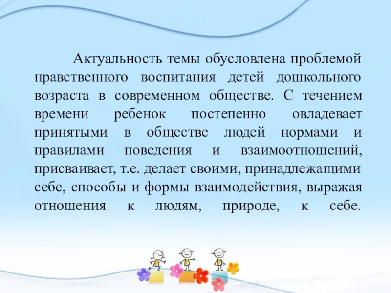Актуальность темы обусловлена проблемой нравственного воспитания детей