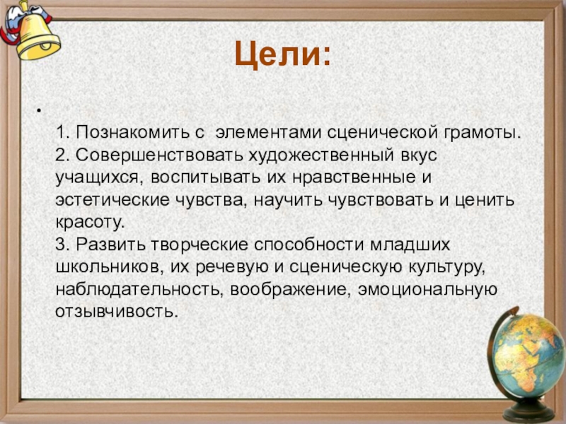 -формирование чувства прекрасного и эстетических чувств на основе знакомства с мировой и отечественной культурой;