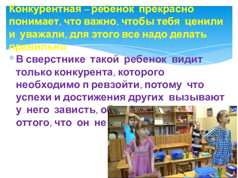 Конкурентная – ребенок прекрасно понимает, что важно, чтобы тебя ценили и уважали, для этого все надо делать правильно
