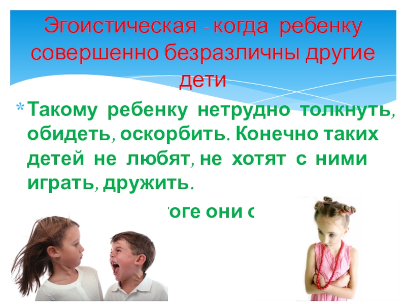 Эгоистическая - когда ребенку совершенно безразличны другие дети