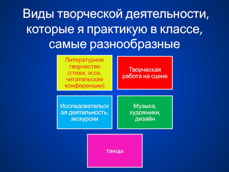 Виды творческой деятельности, которые я практикую в классе, самые разнообразные