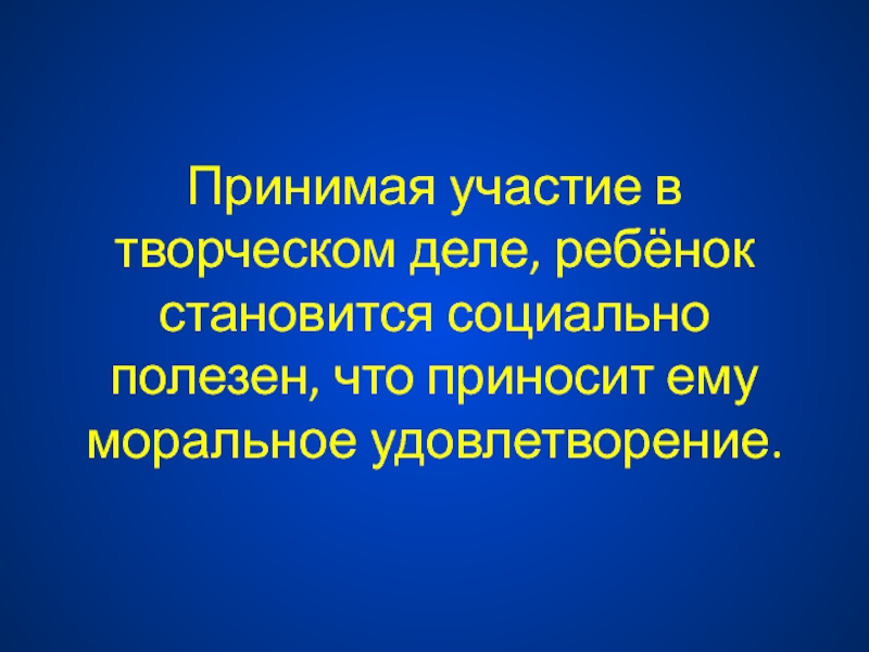 Слайд 15Принимая участие в творческом деле, ребёнок становится социально полезен, что приносит