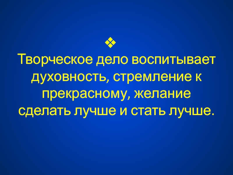 Слайд 16 Творческое дело воспитывает духовность, стремление к прекрасному, желание сделать лучше и