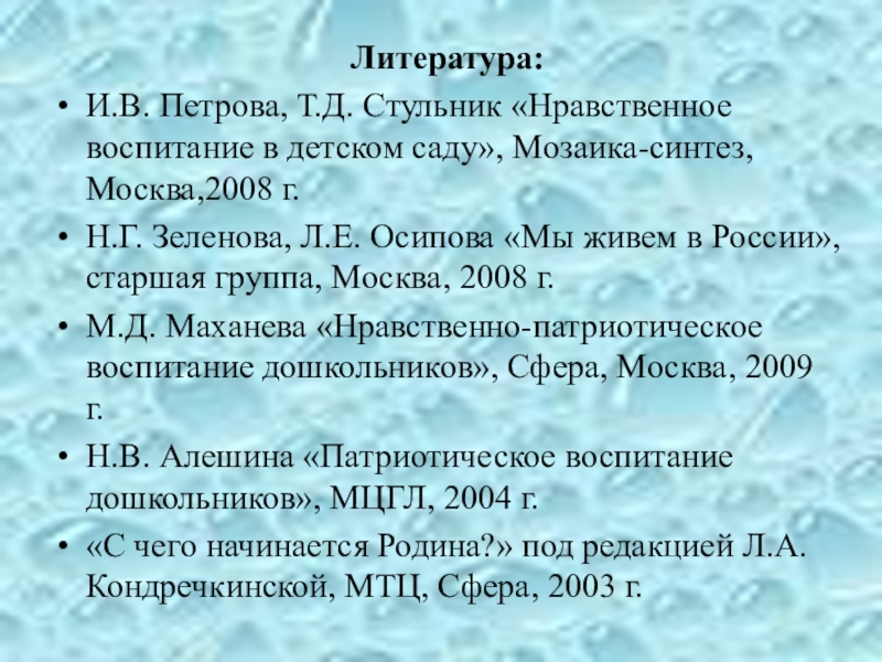 Н.В. Алешина «Патриотическое воспитание дошкольников», МЦГЛ, 2004 г.