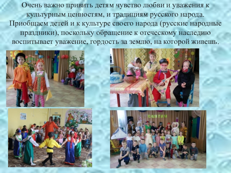 Слайд 39Очень важно привить детям чувство любви и уважения к культурным ценностям,