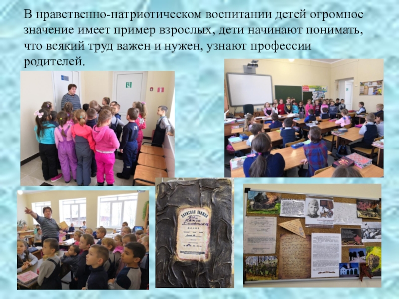Слайд 33В нравственно-патриотическом воспитании детей огромное значение имеет пример взрослых, дети начинают