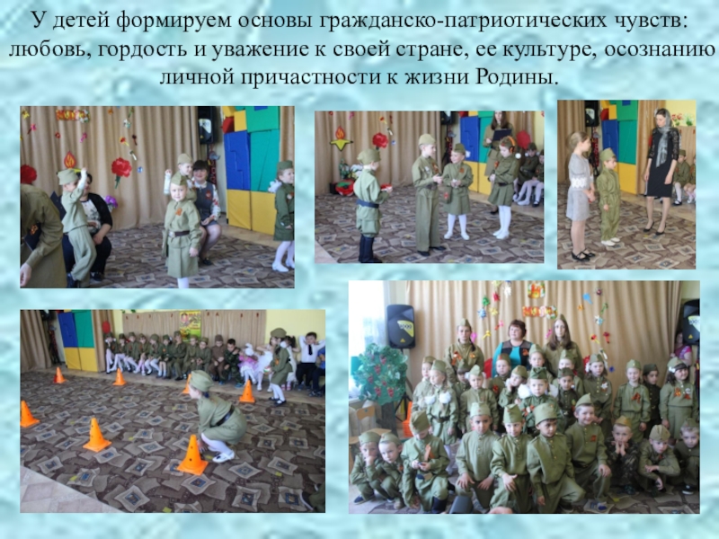 Слайд 43У детей формируем основы гражданско-патриотических чувств: любовь, гордость и уважение к