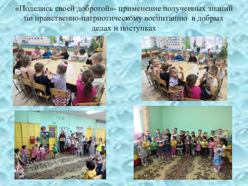 Слайд 49«Поделись своей добротой»- применение полученных знаний по нравственно-патриотическому воспитанию в добрых