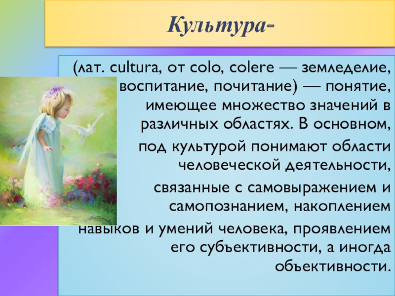 (лат. cultura, от colo, colere — земледелие, воспитание, почитание) —