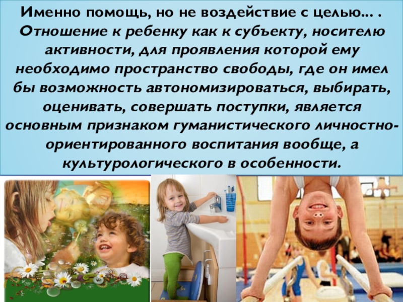 Слайд 4Именно помощь, но не воздействие с целью... . Отношение к ребенку