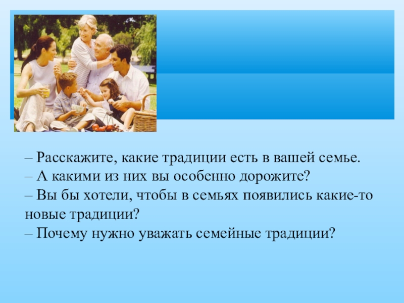 3-я группа: какие традиции будут в вашей семье? Что будет главным в вашей семье? Что нужно делать для этого?