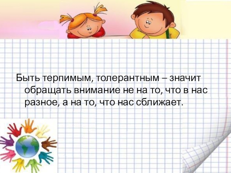 Слайд 15Быть терпимым, толерантным – значит обращать внимание не на то, что