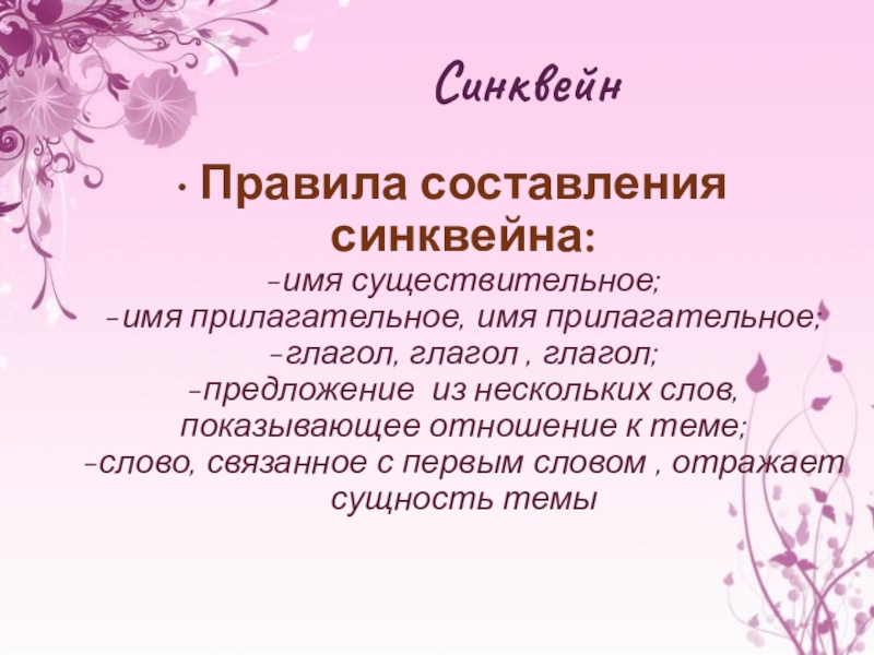 Правила составления синквейна: -имя существительное; -имя прилагательное,