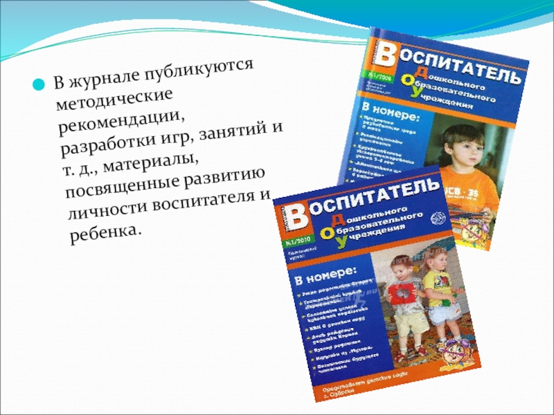 Слайд 10В журнале публикуются методические рекомендации, разработки игр, занятий и т. д.,