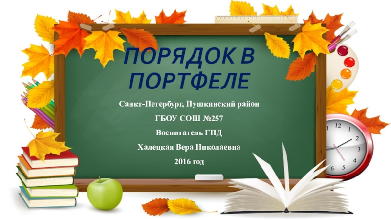 ПОРЯДОК В ПОРТФЕЛЕСанкт-Петербург, Пушкинский районГБОУ СОШ №257Воспитатель ГПД Халецкая Вера Николаевна2016 год