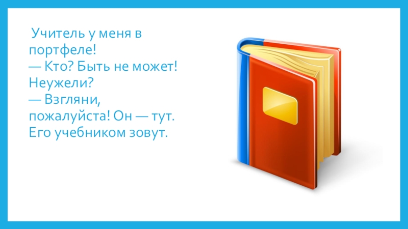 Слайд 8 Учитель у меня в портфеле! — Кто? Быть не может! Неужели? — Взгляни,