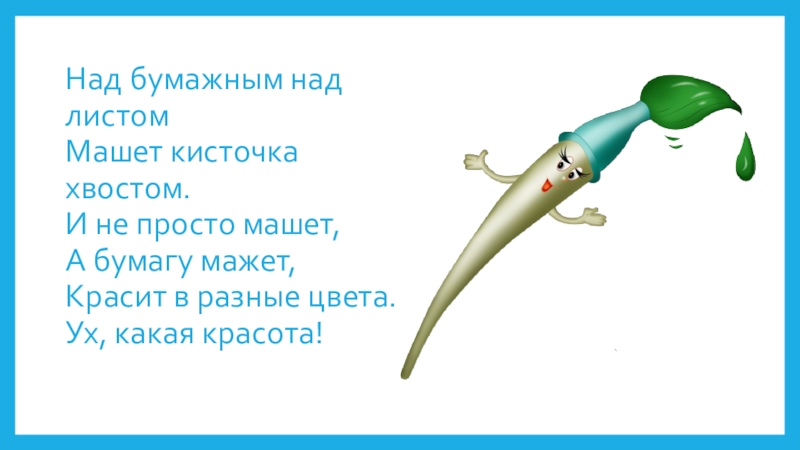 Слайд 10Над бумажным над листом Машет кисточка хвостом. И не просто машет, А бумагу мажет, Красит