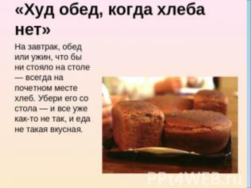 Обычный хлеб содержит в себе практически все питательные вещества, необходимые человеку. И что еще важно, хлеб обладает одним редким свойством – он никогда не приедается, никогда не может надоесть людям.