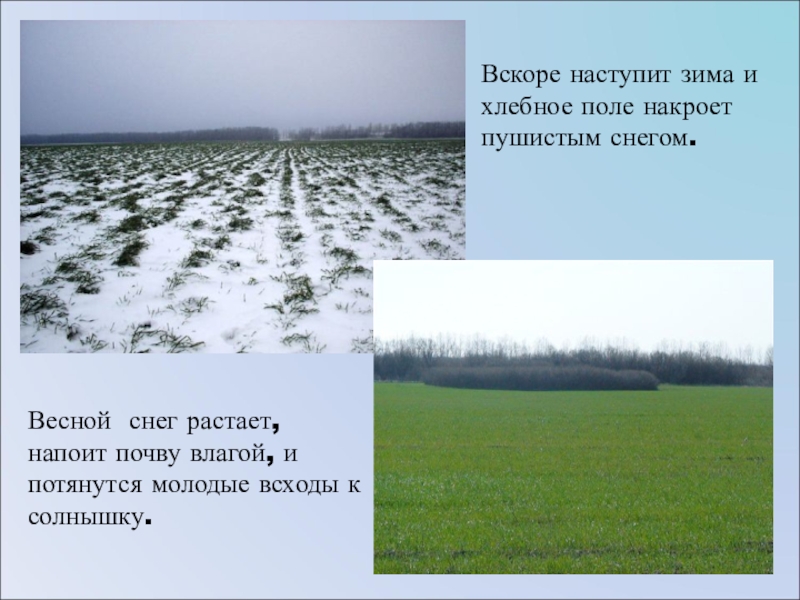 Пройдет немного времени и над землей появятся маленькие зеленые всходы будущего хлеба.