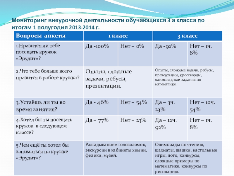 Слайд 25Мониторинг внеурочной деятельности обучающихся 3 а класса по итогам 1 полугодия