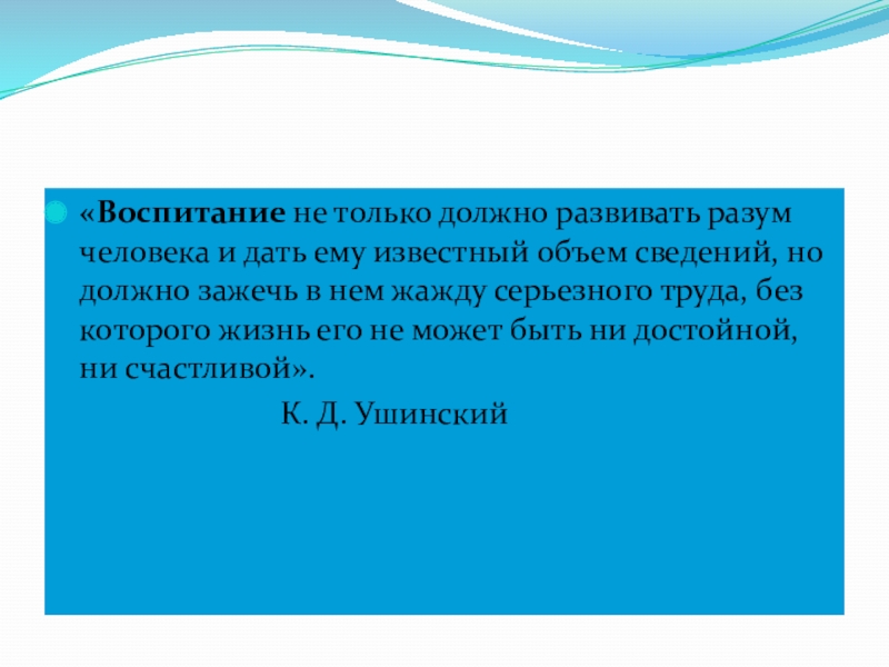 Слайд 2«Воспитание не только должно развивать разум человека и дать ему известный