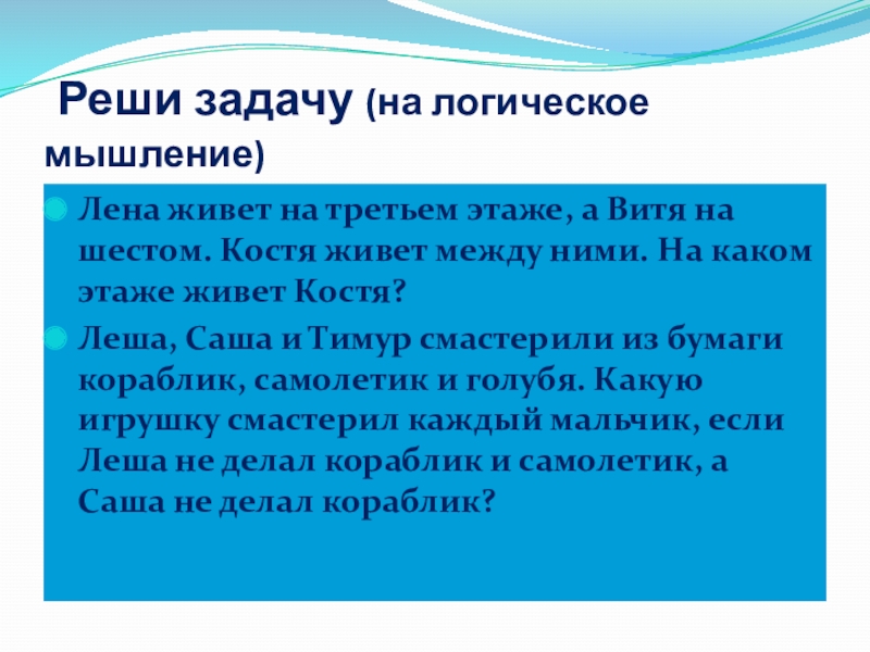 Логические задачи на развитие аналитических способностей и способности рассуждать (5 минут).