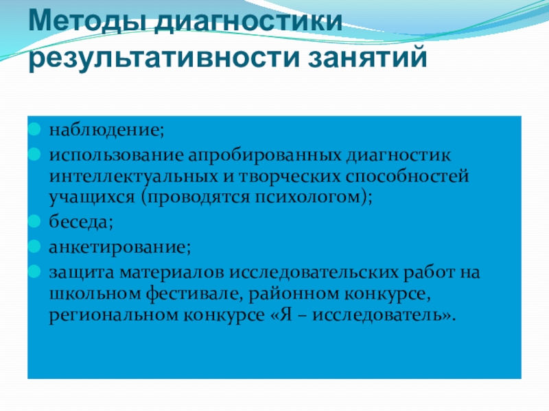 использование апробированных диагностик интеллектуальных и творческих способностей учащихся
