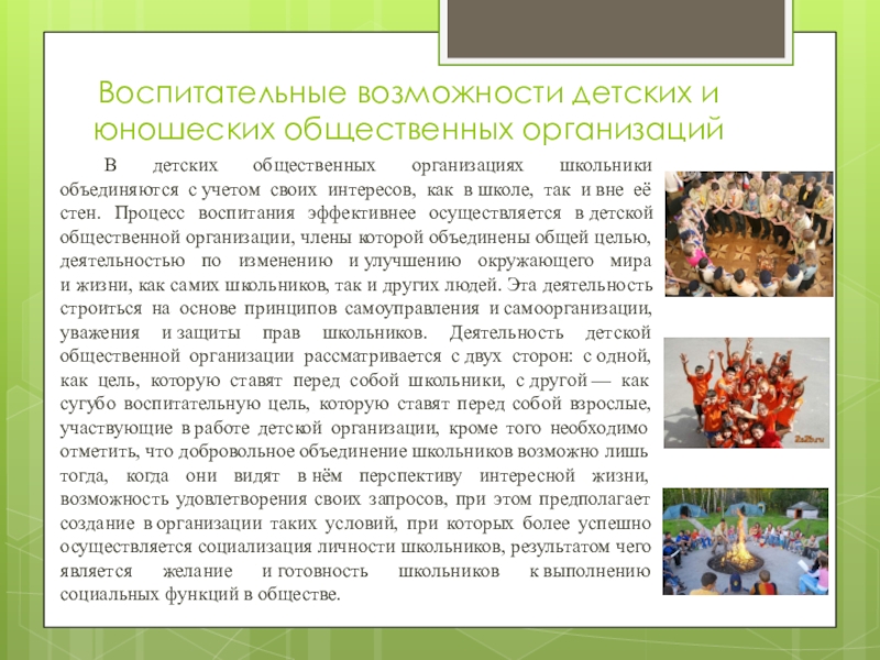 Слайд 4Воспитательные возможности детских и юношеских общественных организаций