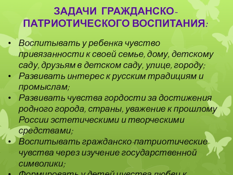 ЗАДАЧИ ГРАЖДАНСКО-ПАТРИОТИЧЕСКОГО ВОСПИТАНИЯ: