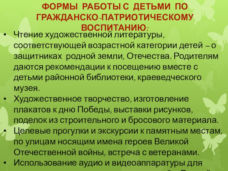 Формы работы с детьми по гражданско-патриотическому воспитанию: