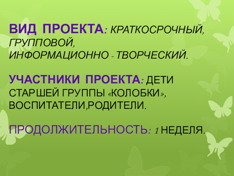 Автор проекта: Воспитатель Горбач А.А.