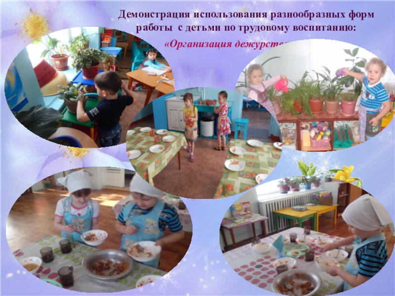 Слайд 15Демонстрация использования разнообразных форм работы с детьми по трудовому воспитанию: