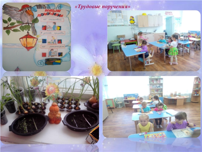 При организации трудовой деятельности обеспечивалось всестороннее развитие детей, формирование жизненно необходимых умений и навыков, воспитание ответственности и самостоятельности. Совместный коллективный труд (прежде всего в природе) способствовал активизации физических сил и умственной деятельности детей, доставлял им радость, позволяя ощущать себя значимыми и компетентными.