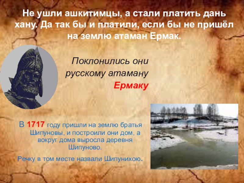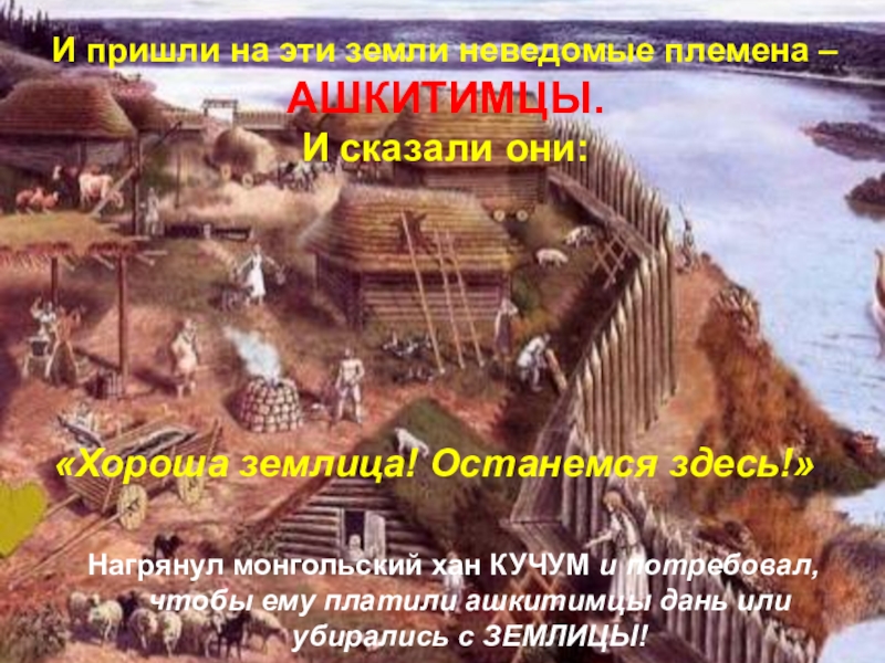 Нагрянул монгольский хан КУЧУМ и потребовал, чтобы ему платили ашкитимцы дань или убирались с ЗЕМЛИЦЫ!