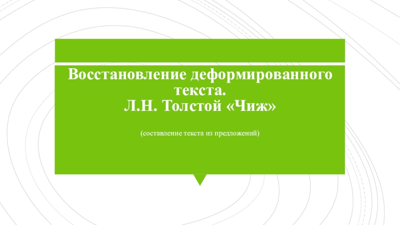 Слайд 1Восстановление деформированного текста. Л.Н. Толстой «Чиж»